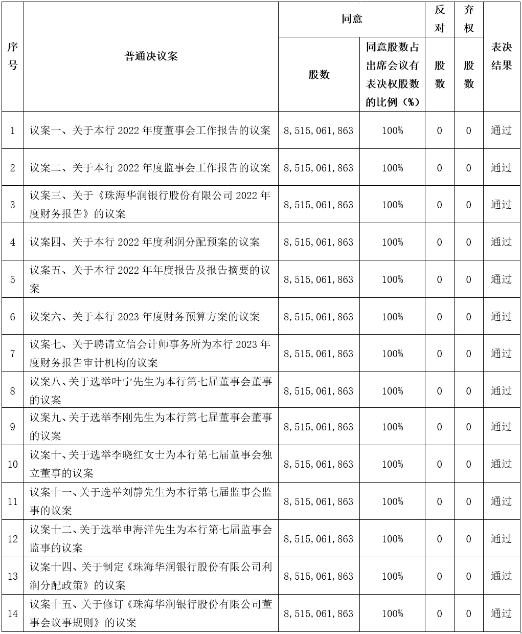 (一)珠海華潤銀行股份有限公司2022年年度股東大會會議決議;