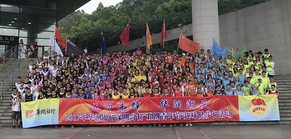 深圳分行于5月13日上午舉辦了“五四先鋒華潤潮頭——2017年華潤銀行深圳分行‘五四青年節(jié)’趣味健步行活動”。此次健步行參加人數(shù)達300余人,分為9個活動小組。