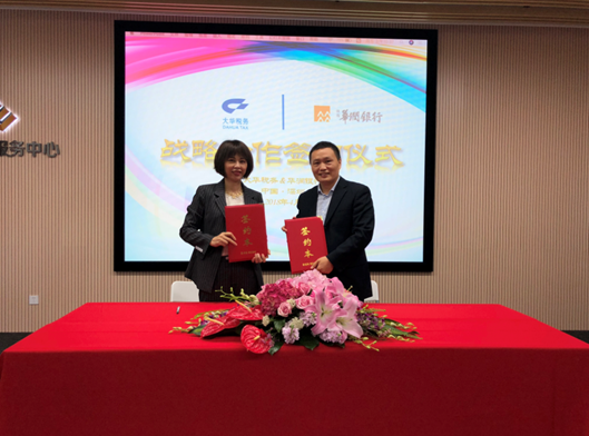 4月20日,深圳分行與深圳市大華稅務(wù)師事務(wù)所(以下簡稱大華稅所)簽訂戰(zhàn)略合作協(xié)議,簽約儀式在訊美科技大廈隆重舉行。深圳分行行長武炤宇、總行金融市場部深圳分部總經(jīng)理陳春蓮、前海支行行長林至君、大華稅所董事長何仲、總經(jīng)理徐文姝、技術(shù)合伙人彭捷等人出席了本次簽約儀式。