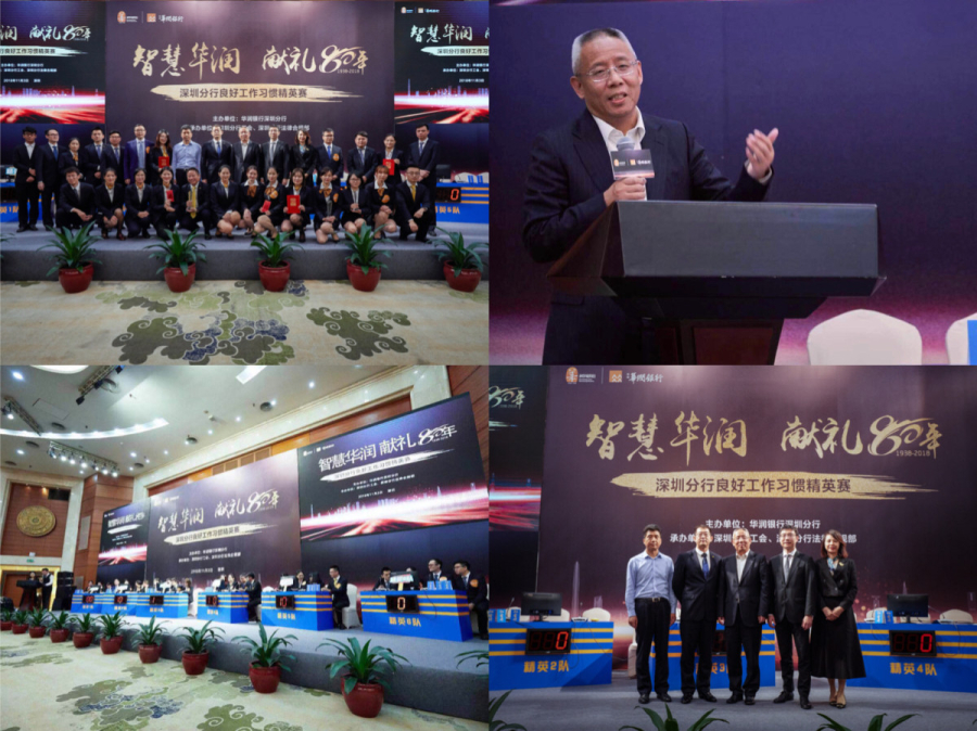 2018年,深圳分行以“培養(yǎng)良好工作習(xí)慣”為合規(guī)經(jīng)營管理的重點(diǎn)項(xiàng)目。為檢驗(yàn)行動(dòng)成果,深入推動(dòng)良好工作習(xí)慣的養(yǎng)成,11月3日,深圳分行全員齊聚一堂,成功舉辦“智慧華潤,獻(xiàn)禮80年”深圳分行良好工作習(xí)慣精英賽,總行監(jiān)事長馬黎民、深圳分行領(lǐng)導(dǎo)班子出席了本次大賽并擔(dān)任大賽的領(lǐng)導(dǎo)評(píng)審團(tuán),分行各部門負(fù)責(zé)人、支行行長組建了大賽的6個(gè)智囊團(tuán),共計(jì)400余人。